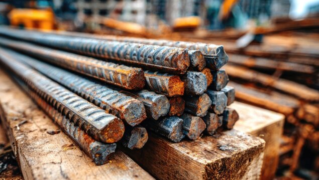 Close-up of stacked industrial steel pipes in a warehouse facility