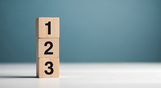 Wooden blocks stacked with numbers one two and three representing simple steps or foundational learning concepts
