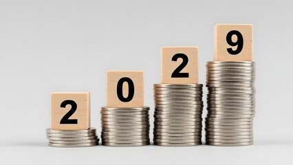 Coins stacked to form the numbers 2029 with blocks symbolizing growth