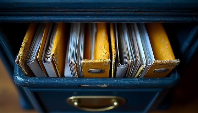 close up view of stack of various envelopes and documents on wooden surface, showcasing different colors and textures. image conveys sense of organization and paperwork