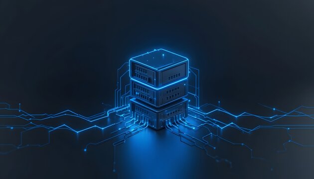Minimalist Abstract VPS Concept with Stacked Server Cubes and Circuit Lines