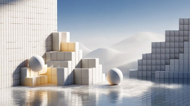 Modern abstract cubes stacked on concrete floor for conceptual photography minimalist design product scene layout