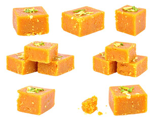Orange Square Confectionery Desserts with Pistachio Garnish Isolated on Transparent Background