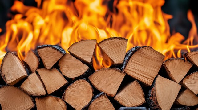 Cutting and stacking firewood for cozy campfires outdoor setting nature scene close-up view warmth concept