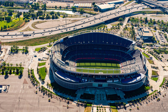 Denver Colorado aerial view of professional football stadium