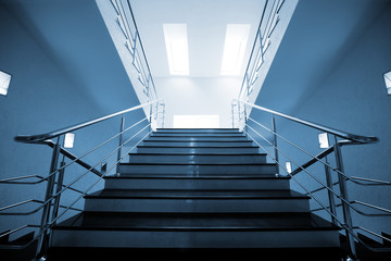 Silhouette people on glass staircase, view from the bottom.Business concept.