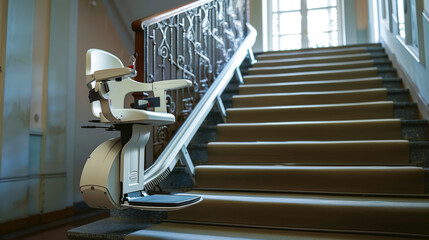 A modern stairlift installed on the staircase of an elegant indoor setting, enhancing mobility.