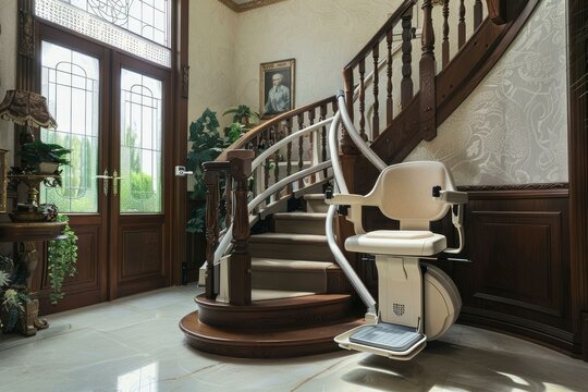 Comfortable stairlift seamlessly enhances the living space for elderly mobility in a cozy home environment