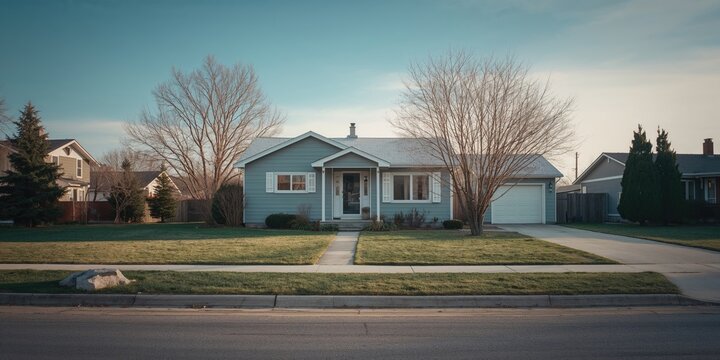 Residential area featuring a sale sign placed before a standalone house