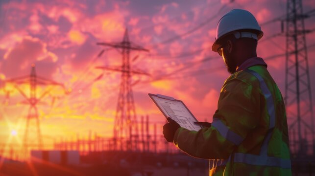 Focused engineers wearing safety gear examine a smoke detector at a construction area, ensuring proper compliance with installation standards and safety protocols.