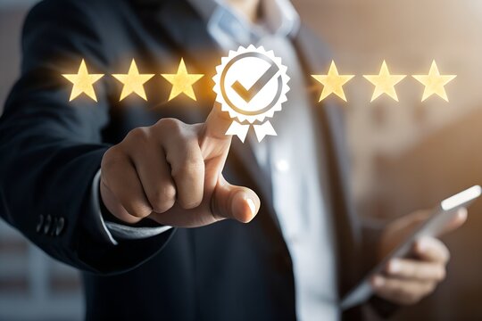 Compliance concept with a man tick checkmark to applied standard and regulation for export products to foreign countries to meet government trade requirement in global business