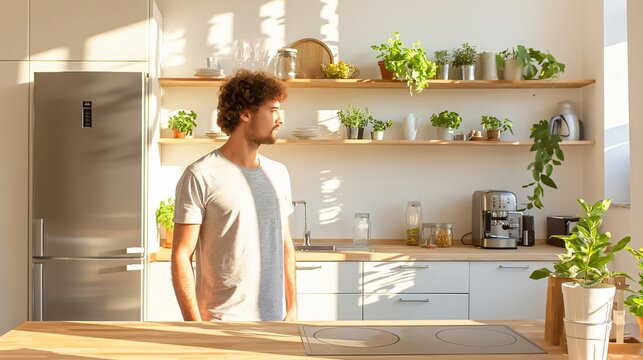 Mature man standing by window in modern kitchen