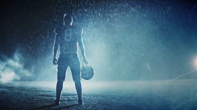 Standing in neon downpour watching emerald code: cyberpunk lone figure on rainy street