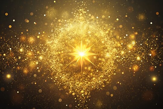 Radiant golden mandala bursting with sparkling light and cosmic dust