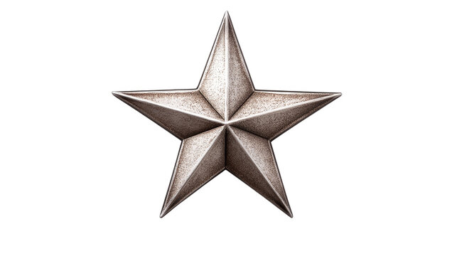 Metallic five pointed star on a transparent background for decor