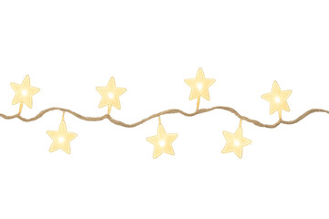 Hanging star lights string decoration christmas party holiday celebration festive glowing stars isolated on transparent background