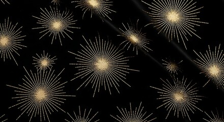 Elegant black fabric with golden starburst pattern creating a luxurious and festive background design