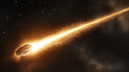 Cosmic Spectacle: Witness the radiant dance of a celestial comet across the inky canvas of the night sky, leaving a sparkling trail of stardust in its wake, an awe-inspiring cosmic ballet.
