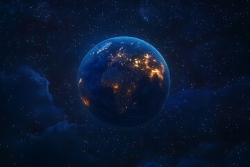 Shimmering night sky with glowing bokeh orbs, soft starfield and blue-purple gradient glow