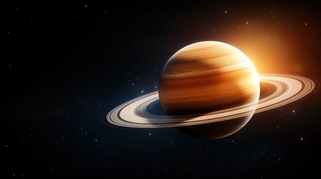 A breathtaking image of planet Saturn with its iconic rings illuminated by distant starlight, showcasing the majesty of the universe and the wonders of celestial bodies in deep space.