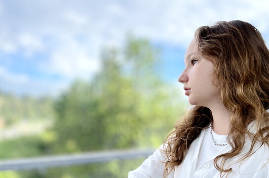Woman with a Lonely Expression Staring Out the Window