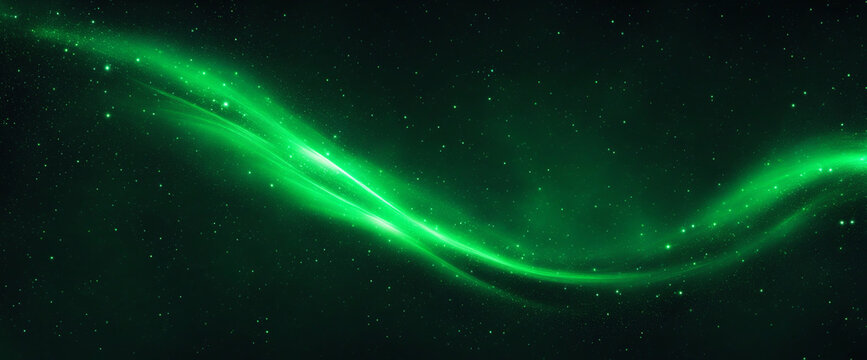 Enchanted night sky background with space for design. Website header banner with sparkling stars effect. Deep green glow.
