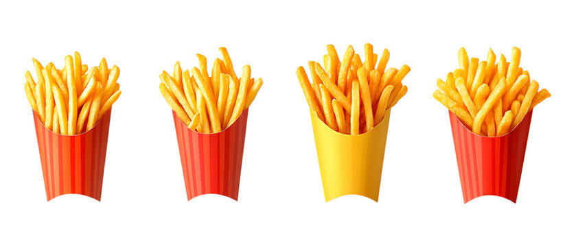 Pack of Fast Food French Fries set of Five Poses set Against Transparent Background for Food Delivery Branding, Restaurant Design, or Snack Packaging Projects