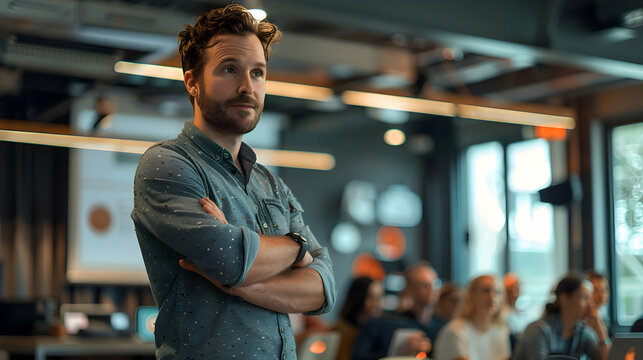 Business Startups: A Norwegian startup founder in Oslo  on key speakers and their detailed explanations during a startup pitch