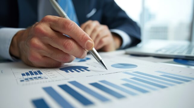 Consulting auditor analyzing Financial Report with Balance Sheet, Income Statement and Cash Flow information. Consultant auditing corporate finance and accounting. Business and operations management