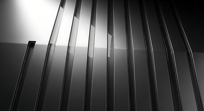 Close-up of curved metal bars with a dramatic light gradient in the background.
