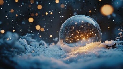 Glowing Snow Globe in Snowy Landscape at Night