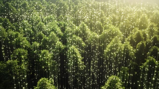 vertical bar graph with glowing green elements in a forest symbolizing sustainable business growth ecoinnovation and environmental progress for a greener future