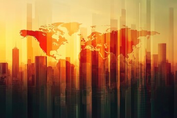 Digital financial data analysis overlay on modern cityscape