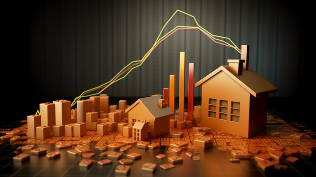 Fusion of 3D mortgage and financial elements brings to life the intricate dynamics between housing, money, and statistical insights