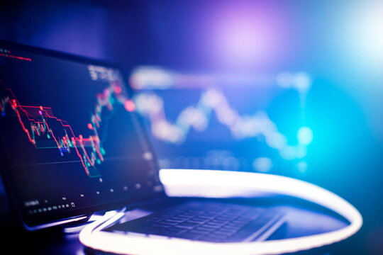 Two businesspeople or an accountant team are analyzing data charts, graphs, and a dashboard on a laptop screen in order to prepare a statistical report and discuss financial data in an office.