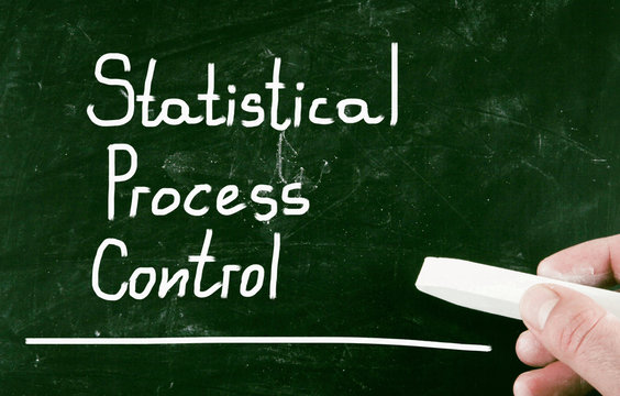 Close-up of SPC control charts showing process variation, technician entering data on a tablet in a manufacturing plant