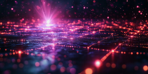 Image of information flows in purple, data processing. Virtual space. AI