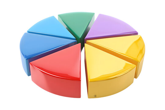 Colorful 3D pie chart with segmented sections, ideal for business data analysis, presentations, and financial reports to showcase statistical information.