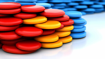 3D bar graphs gradually rising and arranged over various forms of statistical reports and charts spread across a white background