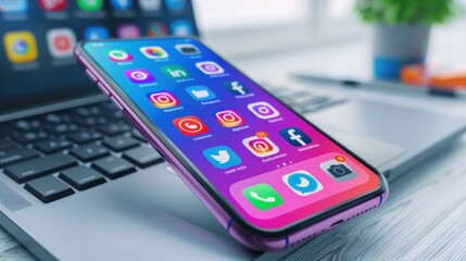 Modern Social Media Analytics on Smartphone Screen with Pastel Icons