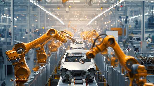 Elevate visuals with a dynamic electric car production line banner. Robotic precision, seamless assembly, eco-friendly stats. Experience innovation in motion.