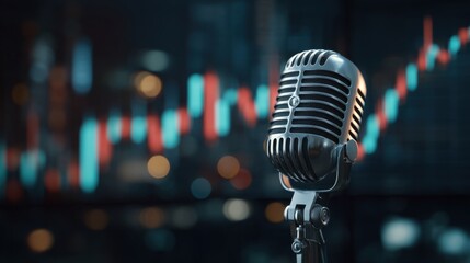Professional Microphone in Focus with Blurred Financial Chart in Background for Business or Finance Themes