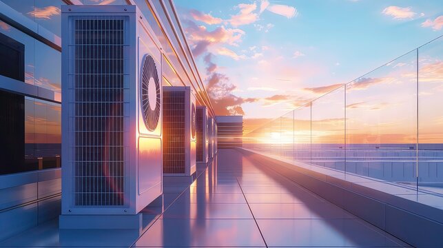 Solar rooftop on commercial structure. Photovoltaic panels for producing of clean ecological electrical energy. Concept of autonomous building