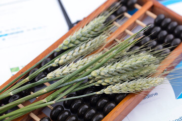 Beads and ears of wheat on paper