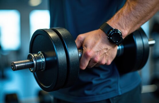 Man lifting weights in a gym showcases strength focus and steady training