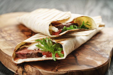 Mexican beef steak burritos with vegetable