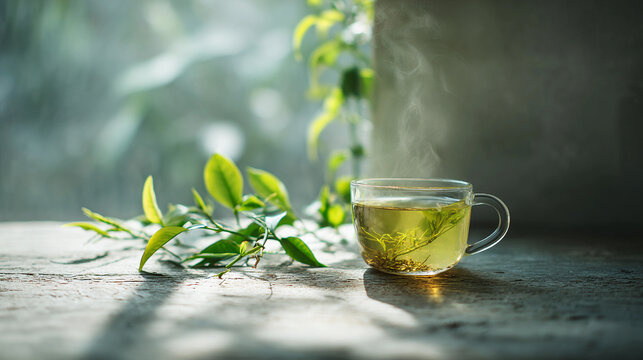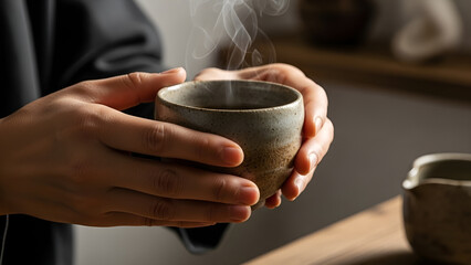 Serene Autumn Morning Tea Ritual on Wooden Table
