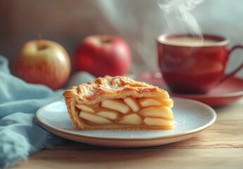 delicious homemade apple pie with lattice crust freshly baked and steaming on a rustic wooden table near sunlit window