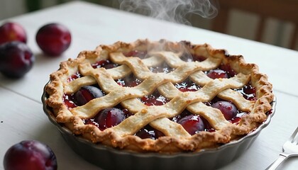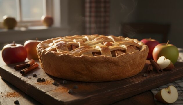 Apple Pie With Lattice Crust Steaming On White Background For Thanksgiving