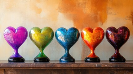 A cheerful collection of colorful hearts on stylish pedestals, evoking warmth and celebration.